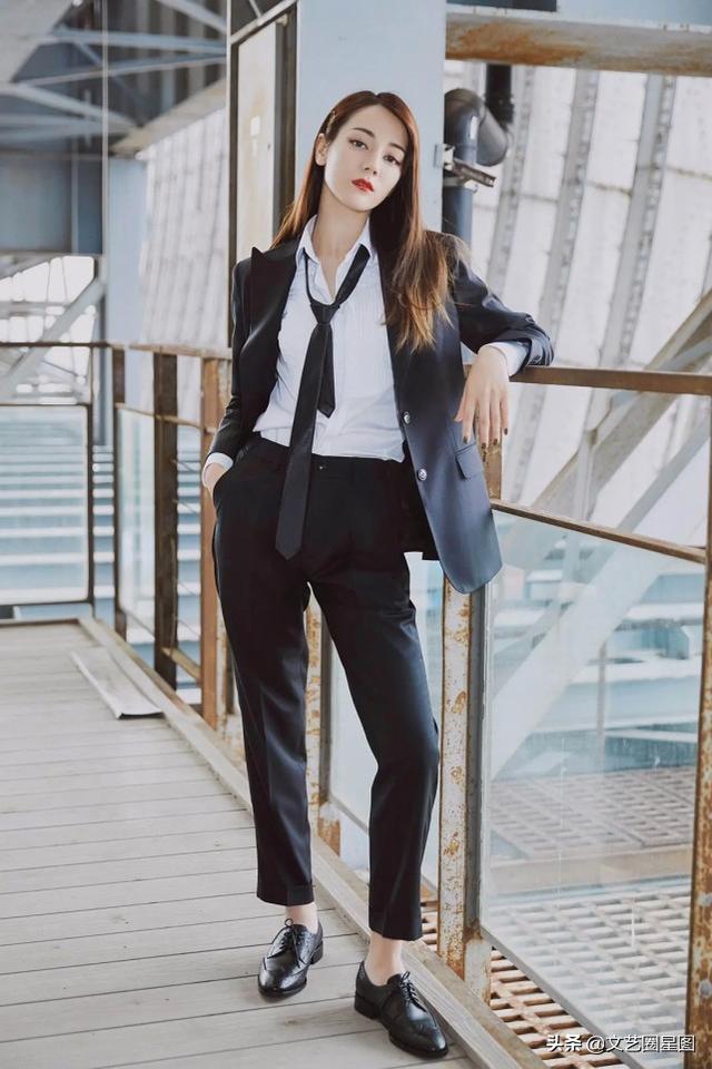 原图中,迪丽热巴穿着一身帅气黑西服,领带半解看上去十分慵懒。一手搭在栏杆上,另一只手则插兜耍帅,颇有种霸道女总裁的架势。而在杨幂大粉晒出的饭制图中,杨幂的姿态及造型和迪丽热巴的原照看不出一丝区别。如果非要找出不同,那就是饭制图中的杨幂穿着白色西服,口里叼着一支烟,更显得魅惑一些。