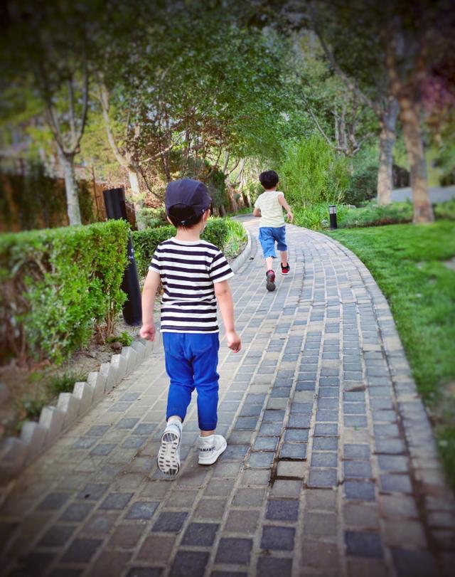 作为父亲的靳东用简短的五个字"二爷,三生快",表达了对于小儿子的三岁生日祝福。照片中的两个儿子十分活泼、可爱。哥哥在前面奔跑,弟弟攥着小拳头在后面沉稳的走着,兄弟俩相伴成长,很是有爱。
