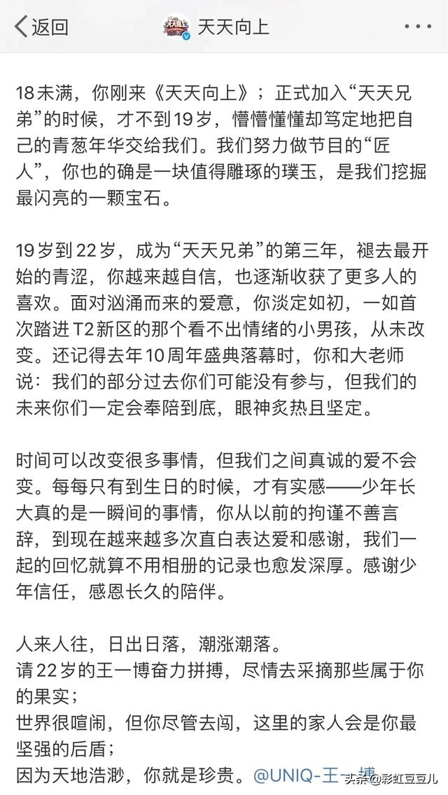 最后,希望一博、天天向上还有天天兄弟都会越来越好。