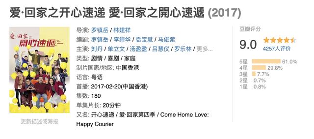 《爱回家之开心速递》从2017年2月开始播出至今已有3年,多次登顶TVB周收视冠军,成为TVB王牌剧集,在豆瓣评分高达9.0,也是近年来少见的破9分的高分港剧。从原定的180集一路“添食”至1000集。值得一提的是,该剧是埋堆堆APP平台播放量排名第一的剧集,积累了一大批忠实粉丝。