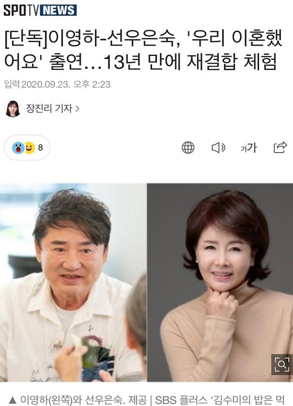 《我们结婚了》从2011年开始到2016年之后便停更了!既然有结婚的综艺,韩国人把离婚也弄成了综艺节目。近日一档新综艺《我们离婚了》引起了大众的关注,该综艺是由《恋爱的味道》的李国勇PD,和《两天一夜》的综艺作家郑善英一起联合制作的新综艺。