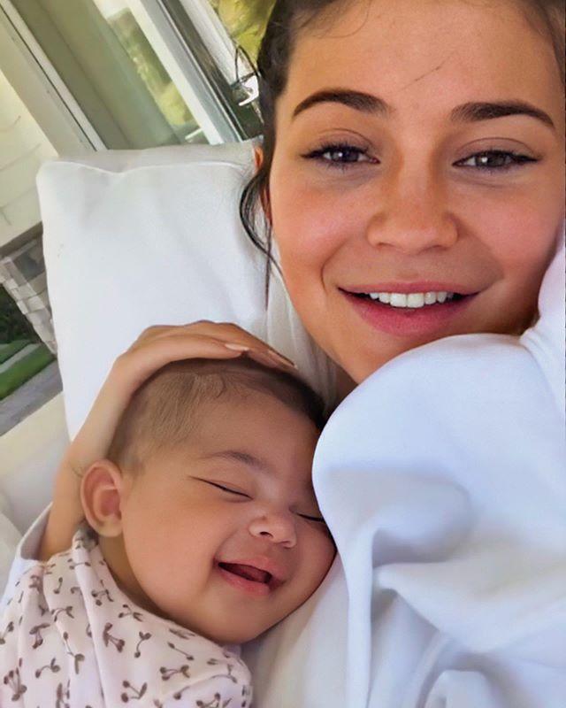 stormi今年两岁了,她刚出生时五官就很明显,跟金小妹十分相似,依偎在妈妈怀里展露笑颜的模样太可爱了,肉嘟嘟的小脸让人想摸摸呀~