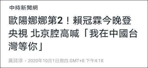 浏览台媒报道,可以注意到它们不仅直接给赖冠霖贴上“欧阳娜娜第二”、“欧阳娜娜翻版”的标签,还声称他的言行是一种“政治表态”,会让台湾民众反感云云。甚至于赖冠霖说出一口流利的普通话,都被攻击说是“纯正北京腔”,没有“国语味”。
