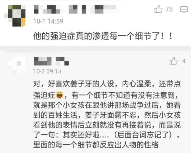 网友们纷纷表示对姜子牙人设的喜爱,称:“他的强迫症真的渗透每一个细节了!”表示喜欢姜子牙内心的温柔,还有细心网友观察到电影中的小女孩看到姜子牙面露不忍后小声安慰,不得不说这部电影太用心了,每个细节都能体现出每个人物的性格。