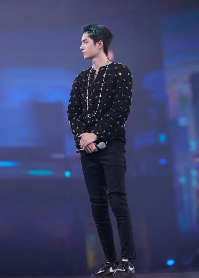 总决赛上的这套造型,王一博穿着闪钻的休闲夹克搭配上黑色休闲裤亮相,大背头一梳,还是那个拽拽的王一博。他的这套造型从风格来说其实还是偏向于街头风的,只是因为舞台造型需要,所以会融入一些比较瞩目亮眼的设计,避免服装太过于低调了。