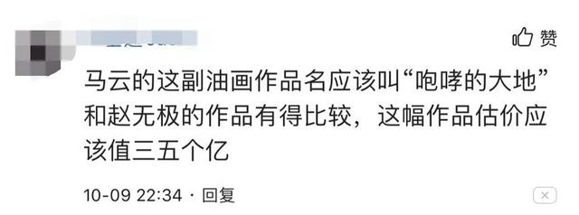 也有网友表示:马云这幅油画作品应该叫“咆哮的大地”,这幅作品估价应该值五个亿。