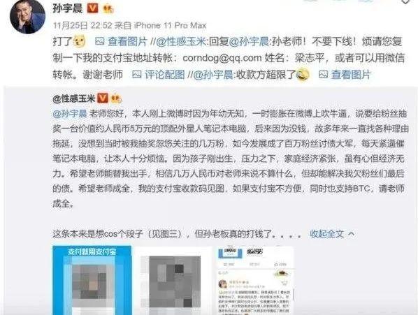 此后,一众网友一哄而上,在微博上疯狂@孙宇晨。而他也没让人失望,掀起一波在线发钱热潮(有转账截图的那种)。