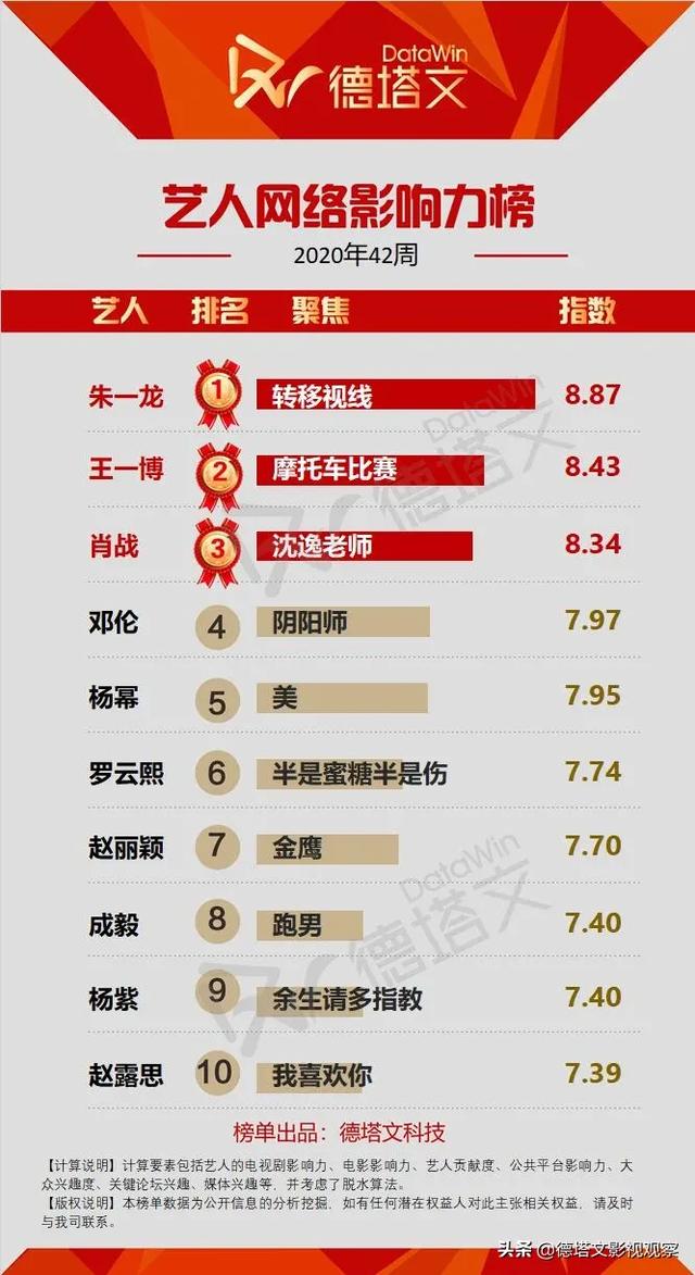 NO.1-3:由于对本周网络影响力前三的流量演员们的聚焦话题,不同群体可能持有完全相反的观点,德塔文为(因)保(为)持(求)中(生)立(欲),本次对于榜单1-3名的朱一龙、王一博、肖战的聚焦热词不予解读。聚焦热词为大数据统计结果,仅代表网民关注焦点,不代表官方信息和德塔文观点。