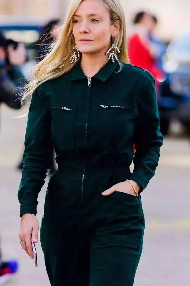 中性风或者帅气感的女生可以尝试工装连体裤,所谓工装连体裤其实在设计上就是有点类似于比较正式的工作服的版型设计。基本上以暗色系为主,搭配上一些帅气又利落的剪裁让整个人看起来有一种娘man风的超模感。