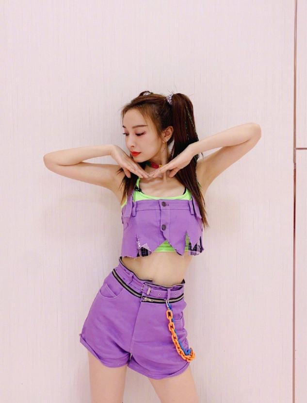 虽然吴昕已经到了30多岁的年龄,还是可以轻轻松松的打造一种女团的风格,你看她这一身紫色的穿搭,上身搭配紫色超短衣,露出纤细的小蛮腰,下半身搭配高腰超短裤,打造一双又长又细的大腿。裤子采用的是直筒的版型,能遮住大腿多余的赘肉。再在裤子上加入了一些链条饰品,让穿搭更个性时髦。
