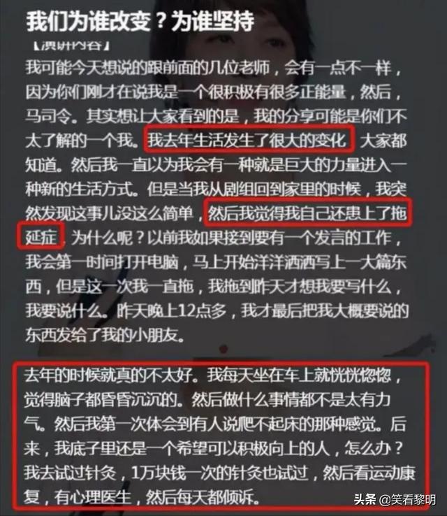 不说其他的了,回过头来说下马伊琍自述离婚后的状态吧。她表示自己虽然外表看上去是一个积极充满正能量的一个人,但其实外界对自己还是不了解。去年的生活就发生了很多变化,甚至患上了拖延症,一件事都会拖很长时间才去做。不像以前只要有发言,肯定第一时间去准备。