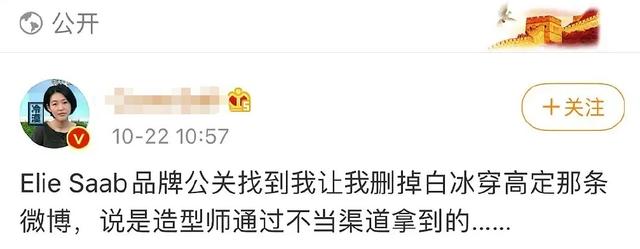 品牌也挑明星?白冰穿高定裙被要求删博打脸,由造型师不当获得