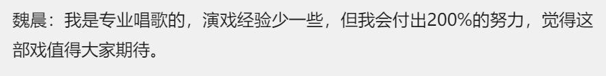 可见,相比如今很多述说着音乐梦想,转身出道就舞台丢一旁开始演戏的“爱豆”,魏晨从最初参加选秀,再到后来演戏,个人的目标并没有变过——就是做歌手。