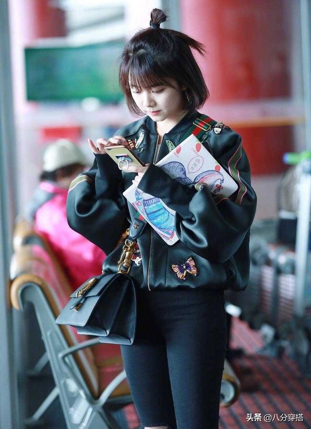 飞行员夹克很适合穿出BF风,带着点小帅气又美又酷,建议大家学着阿娇来尝试用它get时尚感。?