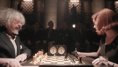 当然,成瘾可以制造一个棋疯子,不可能铸就天才。她在国际象棋上确实有卓越天份,除了几次遭遇非常强劲的对手——比如苏联人,她赢棋都像砍瓜切菜。剧情对这类情节的渲染,颇有点爽片的色彩。