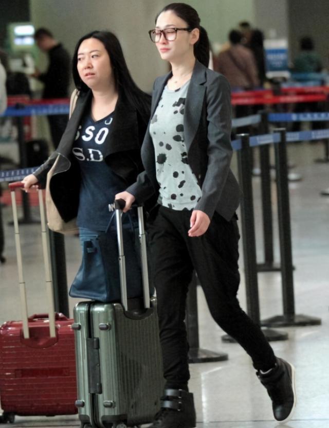 李小冉素颜超自信走机场,穿西装配高跟鞋,造型优雅不像40+