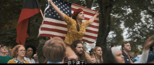 比如,在游行人群中,举着美国国旗的女人,被几个白男一直嘲讽,让她回家做饭。最后甚至被他们按在地上,扯掉衣服,差点被侵害;