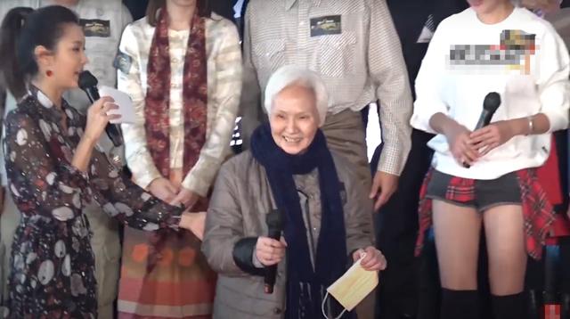 当天雪妮身穿棉袄、系着围脖,穿衣风格与现场其他人完全不在一个季节,看得出以保暖为主。今年75岁的她,满头白发苍老许多,一路由主持人搀扶上台。