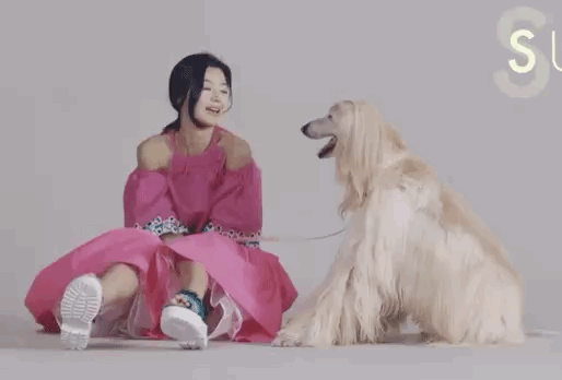 欧尼身穿玫红色的连衣裙甜美又凸显气质,跟可爱的狗狗互动太有趣了,动作和神态也太少女了吧!?