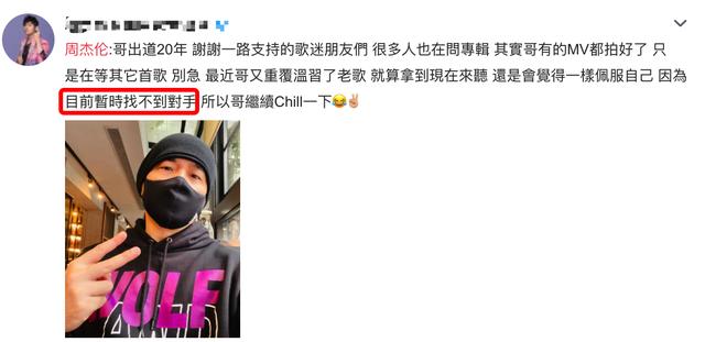 虽然后来周杰伦渐渐降低了发新歌的频率,但只要一发歌就肯定屠榜,而且周董的新专辑马上就要来了!他表示自己其实已经拍好了一些歌的MV,等其他歌制作完毕后就会发专。