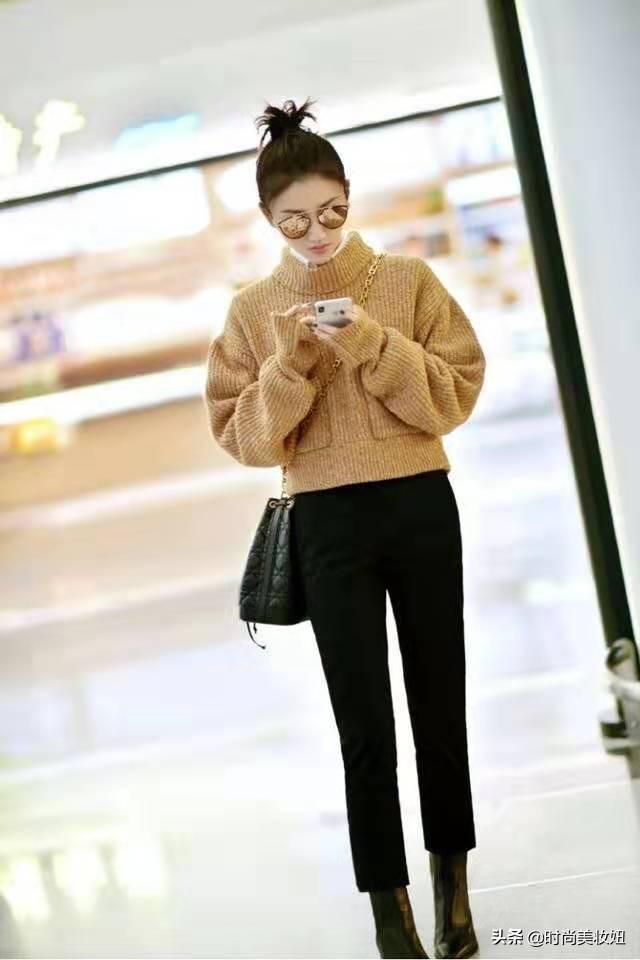 毛衣是秋冬季节的必备单品,女明星和普通业余爱好者都非常喜欢这个季节的毛衣,如果想要表现出温暖和轻快的感觉,可以选择单独穿着毛衣。“携带物品”的女王,身穿骆驼色短毛衣,配高腰裤,气质时尚。