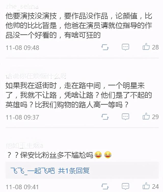 对于这件事情,网友也有不同看法。有人表示商场人流量特别大,品牌方和商场怕引起安全事故,所以安排的保安,并非本人所为,怪不到本人头上。