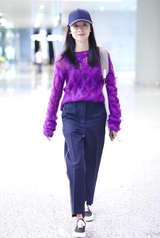 导读:董洁真没架子,穿紫色毛衣配阔腿裤走机场,素颜戴棒球帽更显嫩