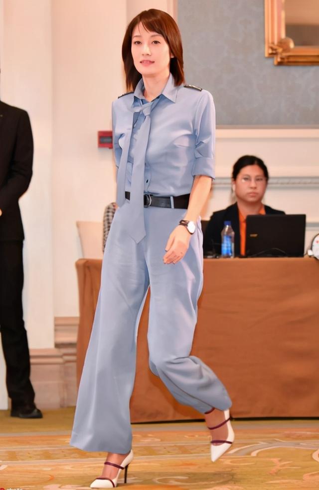 西装可以说很受女明星的青睐了,她所穿的这一件西装,整体设计偏悠闲一点,增添了许多活泼的元素在里面,跳出了中规中距西装的风格,增添了新的设计元素在里面,尤其是衣摆这个地方设计的和风衣有些像。