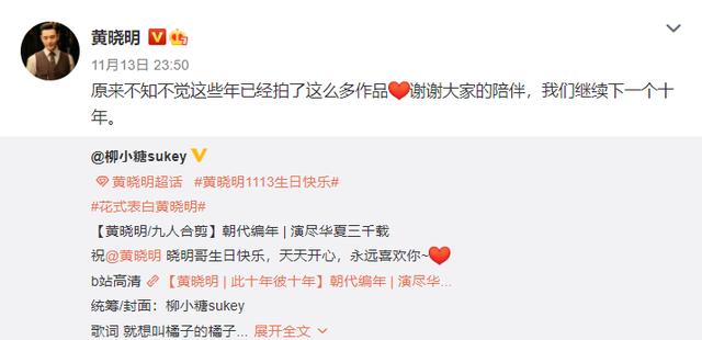 黄晓明连更7条微博庆生