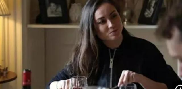 图中的刘碧丽打扮的十分休闲,身穿着一件黑色的长袖外套,一头长发随意的披散在肩头,正在拿刀切着牛排,动作看起来也是非常的优雅。