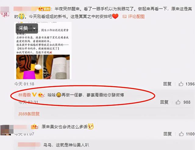看到林青霞重回微博,很多粉丝都表示十分激动。有网友说:今天刚看姐姐的新书,看了一眼手机以为眼花了。”还有人说:“原来美女也会说这么多话,原来美女也会熬夜。”