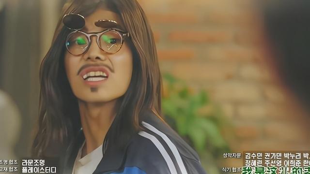 这个人妆容很夸张,戴着一副卡通眼镜,有点小龅牙,发型很凌乱应该是戴了假发,留着稀疏的小胡子,赤脚凉拖,一脸猥琐的样子,矫健得像一只猴子。