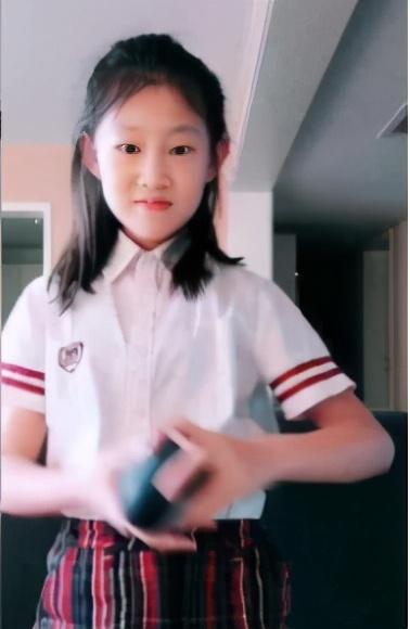 14岁的她还画了一点淡妆,涂了一个红唇,做了黑色的指甲片,跟随音乐不断变换表情、扭动身体,女团范十足。