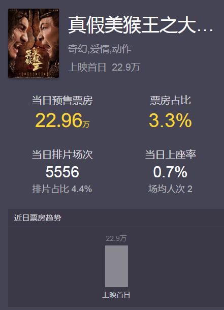李现的《赤狐书生》虽说大家同样不太看好票房大卖,但起码预售票房能破1300万,相比之下《真假美猴王之大圣无双》就有点凄惨了。