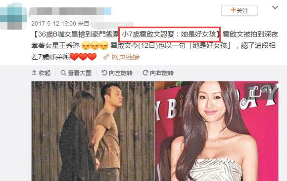 事后霍启文回应绯闻只说:"她是好女孩",也从侧面证实两人恋情。