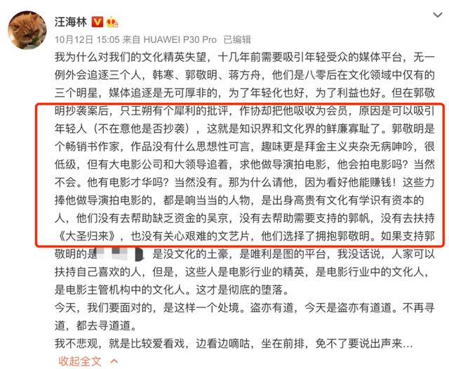 编剧汪海林就一针见血的指出,投资方愿意请郭敬明拍电影,就是看好他能赚钱。毕竟当年的郭敬明,也是作家界的“顶流”,有很多书粉愿意为他买单。