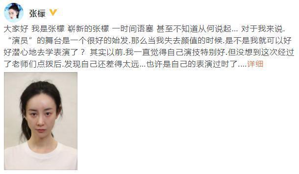 稍晚,她发长文再谈此事,表示“我现在是这张脸了,也不会再去改变了,今后我也只可能在现在这张脸上慢慢变老了……”“过去的张檬已经死了…但未来是崭新的,因为我的年少无知我也付出了代价”,最后表示会用演技再征服大家并劝诫大家不要去整容,“今后我会一心扑在演技上,失去了美貌的张檬,一定会用演技再征服大家”,“我想告诉大家,千万千万千万不要去整容!”