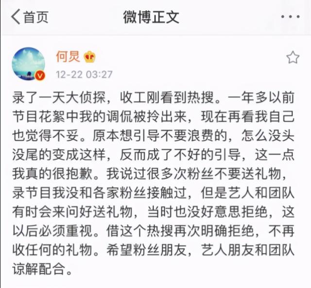 事情越演越烈,何炅忙不迭的出来澄清道歉,但是这件事最终会怎么解决,不是粉丝和网友说了算的,收受礼物金额过大,不上纲上线也难。确实,粉丝向爱豆送礼这一风气已经在国内跑偏很久,粉丝们都将此作为对爱豆热爱表现程度的衡量标准,花多少钱等于你有多爱这个明星。