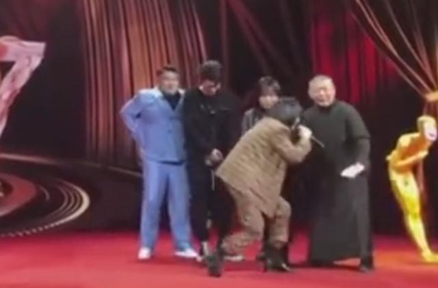 郭德纲见到如此大的阵仗也是被吓到了,立马将李艺彤扶起来,刚刚还在才艺表演突然就受了一跪,尴尬的说:"这姑娘,好好笑啊。"