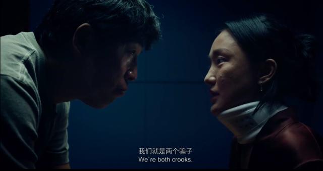 随后一句“我们就是两个骗子,可是骗子偶尔也讲信用对不对?”直面两人拉扯的“命运感”。