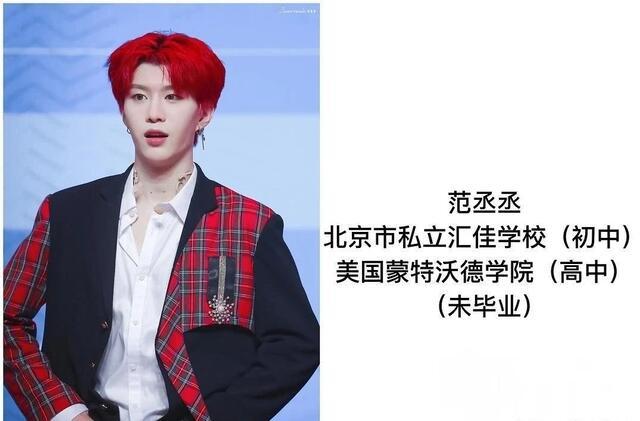 第三个就是范丞丞了,范丞丞毕业于北京的一所贵族学校读书,07年,范丞丞随范冰冰出席柏林国际电影节活动时,首度在媒体曝光。范丞丞在15岁的时候,就已经悄悄赴美留学了,而在美国读完书以后,范丞丞又赴韩国当练习生,所以现在也算是高中学历了。