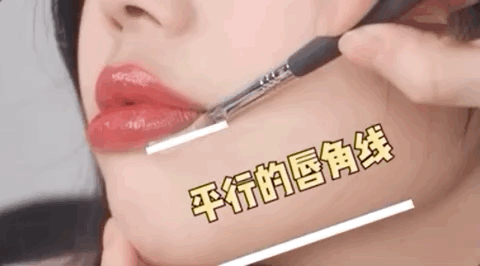 然后用刷子蘸取遮瑕,在唇角画出一条与下颌线平行的唇角线,肉眼可见地缩小唇角。