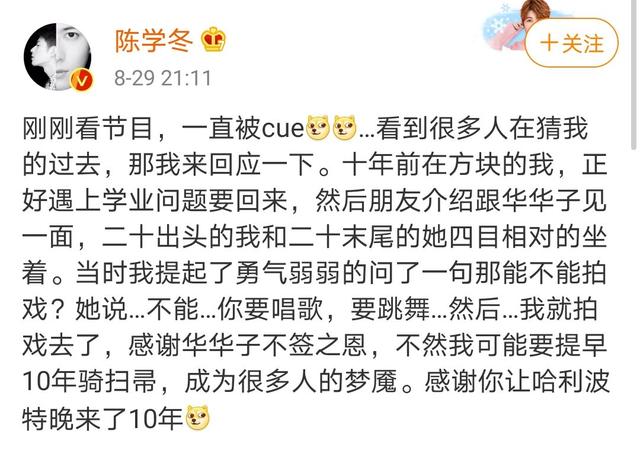 这期节目播出后,很多网友都在问:“陈学冬之前怎么还被杜华拒绝过?”不得已陈学冬在线解疑:感谢杜华的不签之恩,不然我可能会成为很多人的梦魇。“