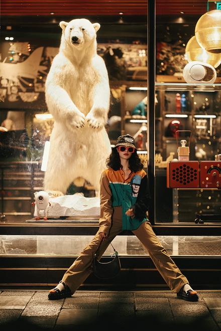 孙佳雨初秋夜景写真 蓬松卷发慵懒复古解锁新穿搭