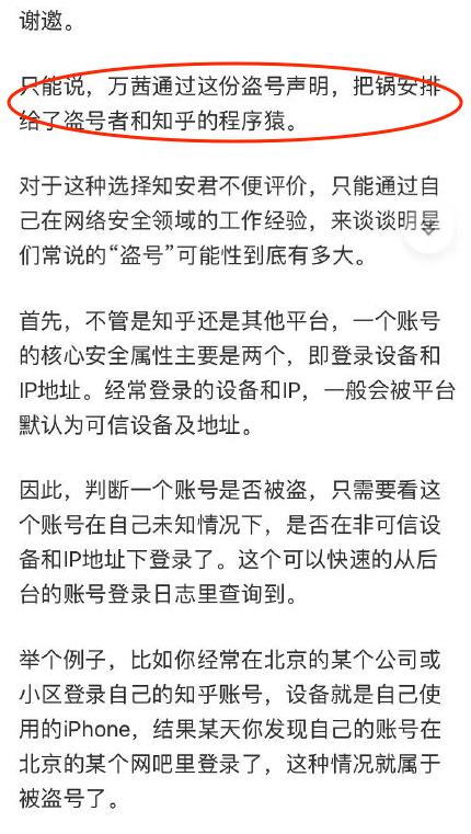 它从各个角度科普了被盗号的几种可能,并基于行业经验得出了一个结论:像某乎这种运营了十年左右的大平台,被盗号的可能非常低。