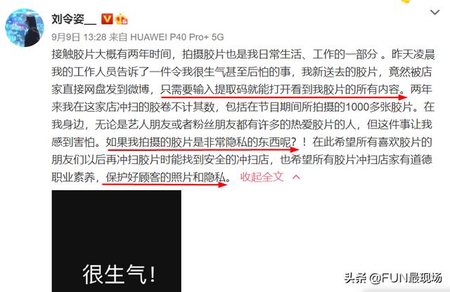 刘令姿接触胶片已经两年多了,单在节目期间就拍摄了1000多张。最近发生了一件让她特别生气的事情,她经常冲扫胶卷的店铺把她胶片里的所有内容发到了微博上。如果是别人非常隐私的照片呢?她呼吁店家要有职业素养,保护好顾客隐私。