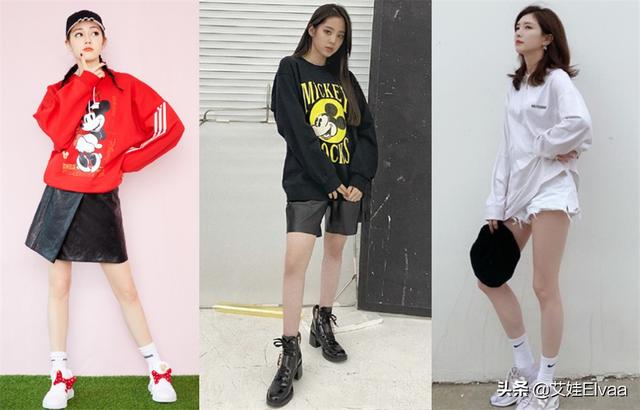 比起连帽卫衣搭配短裤,圆领可以说把减龄少女这一份既视感演绎到了极致,如果觉得纯色卫衣太过于简单,可以通过时尚元素的添加,让造型变得更加个性有亮点,比如说卡通元素,甜美减龄又充满看点,当然纯色也能穿出少女感,像江疏影,一身白色,少女感十足。