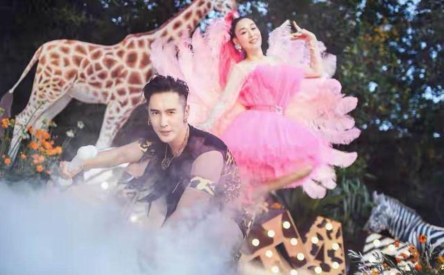 高耸的妈欸粉嫩的渐变长发,炫酷又个性,少女感满满,一张完美大气的五官被展现到了极致。火烈鸟的翅膀增添了灵动仙美画面,烟雾缭绕越看越像仙境,与小12岁老公深情对唱,哪像50岁的人?张伦硕的造型更加的野性,一身野人豹纹装,这是在cos豹纹野人部落吗?美女与野兽?张伦硕穿露肚脐装,豹纹半身裙,长筒靴,满满的阳刚男儿,好帅气。