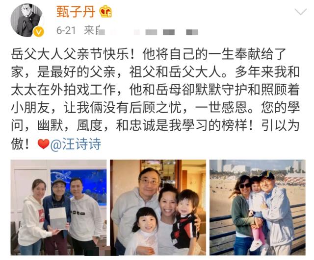 甄子丹今年还在社交平台上祝福岳父父亲节快乐,当时他表示岳父将自己的一生都奉献给了家,是最好的岳父大人,岳父也帮助甄子丹许多,甄子丹还称岳父的学问,幽默,风度和忠诚都是他学习的榜样。