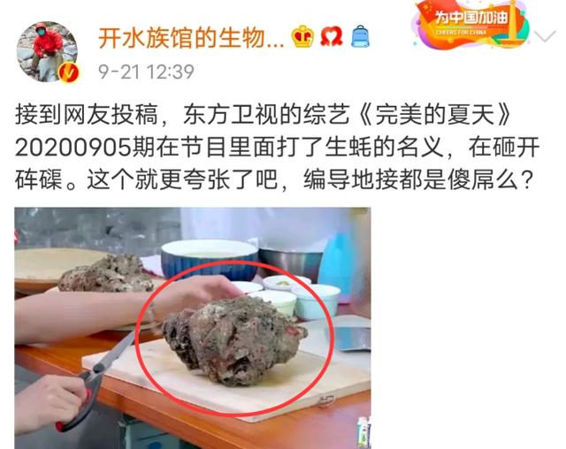 但这位网友却举报节目组是借着打生蚝名义实际吃的是砗磲,还在博文中发文吐槽节目组“这个就更夸张了吧?编导地接都是傻X么?”